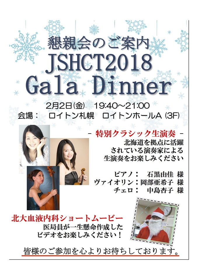 → 当科同門の岩崎博先生のご令嬢である石黒由佳様(ピアノ)含め3名による生演奏があります!